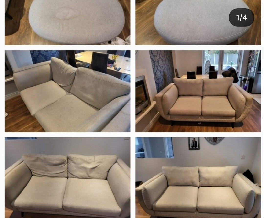 Complete Sofa Over Haul All the benefits of Steam Cleaning and Cushion Refurbishment Coming Together To Give Your Upholstrey A Deep Clean And Get It Back Into Its Original Shape